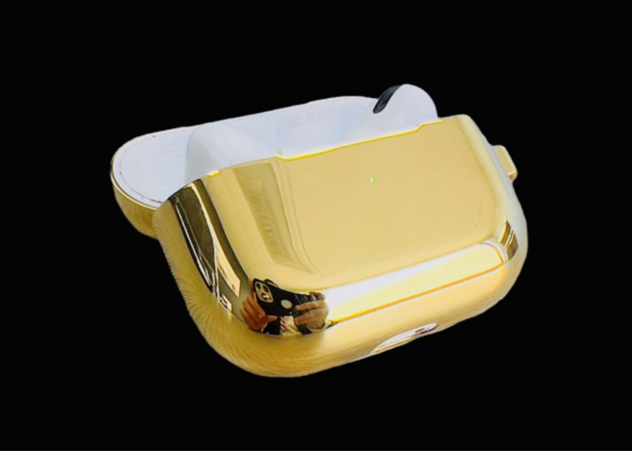 Der Juwelier aus Arizona beschränkt sich nicht auf die Veredelung von Smart-Watches. Auch Smartphones werden “gepimpt”. Das iPhone vergoldet, mit einem Apple-Logo aus kleinen Brillanten hat die Firma ebenso im Angebot, wie vergoldete Lade-Cases für die Kopfhörer.