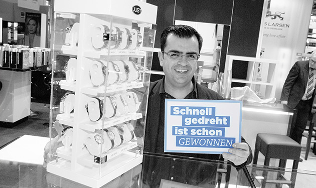 Als fairer Fachhandelspartner hat sich die Casio-Gruppe vor allem in den vergangenen Jahren einen guten Namen gemacht. Fremdwörter sind dort After-Sale-Probleme, Lieferantendruck oder Distributionserweiterungen. Stattdessen freuen sich Juweliere über extrem konstante Trends (Casio Gold-Vintage-Uhren), zukunftsfähige Neuheiten (Connected Watch EQB-500) und große Marketingunterstützungen. Für nicht wenige Juweliere ist Casio der beste Schnelldreher bei Uhren unter 50 Euro. Dementsprechend hat sich Kai-Christian Helms die Schilder „Konzept ist König“ und „Ich kann nicht ohne Juwelier“ genommen.