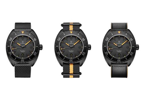 Zu Ehren der ersten Taucheruhren mit Drehlünette aus dem Jahre 1962 hat Eterna nun eine auf 888 Stück limitierte Black Edition lanciert, die mit ihren geschwungenen Flanken und der Dreiecks-Indizes an ihre Vorgänger erinnert. Die Special Edition ist mit einem schwarzen Milanaise-, einem Nato- oder einem Lederband erhältlich. Außerdem gibt es eine unlimitierte Variante in Edelstahl.