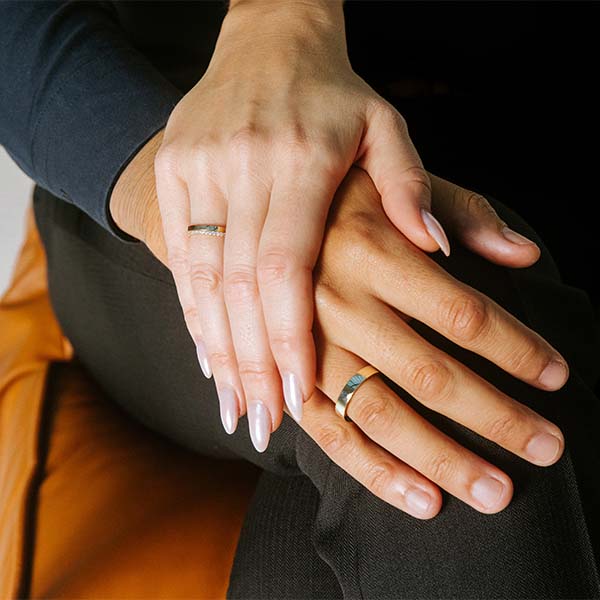 Im Mittelpunkt steht der persönliche Austausch, um gemeinsam mit unseren Partnern das Ziel zu verwirklichen, den individuellen Trau(m)ring für Endkundinnen und Endkunden zu schaffen. Dabei bauen wir auf unser langjähriges Fertigungs-Know-how, modernste 3D-Konstruktionsprogramme sowie innovative Materialien wie Zirkonium in Kombination mit Gold.