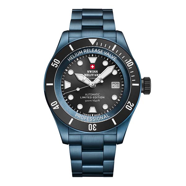 Swiss Military by Chrono nutzt die INHORGENTA 2026 für eine gezielte Produktoffensive. Im Mittelpunkt steht eine limitierte Diver Automatic, die mit einer Wasserdichtigkeit von 500 Metern klar im professionellen Toolwatch-Segment positioniert ist. Die auf 500 einzeln nummerierte Exemplare limitierte Taucheruhr richtet sich an Kunden, die Robustheit, Technik und Exklusivität suchen. Darüber hinaus ist jede Swiss Military by Chrono Limited Edition ein offiziel lizenziertes Produkt der Schweizerischen Eidgenossenschaft. Dieses Siegel bestätigt seine Herkunft, Qualität und Echtheit.