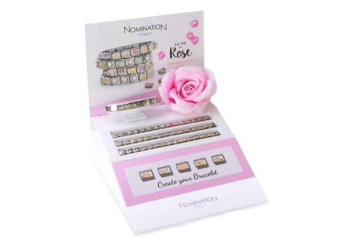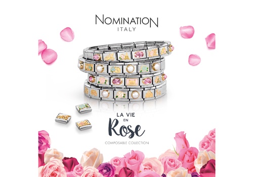 Nomination hat das Jahr 2016 unter das Moto La Vie en Rose gestellt und lancierte im Zuge dessen außerdem eine neue Kollektion mit demselben Namen. Die Composables sind mit Rosenmotiven und kleinen Eiffeltürmen verziert und glänzen wie gewohnt in Edelstahl, Email und 18 Karat Gold.