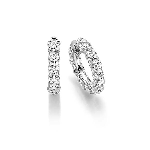 Die Creolen zeigen die luxuriöse Schönheit und Brillanz weißer Diamanten in jeder Facette. Auch hier wurde ausgeklügelte Fasstechnik angewendet, welche die Illusion erzeugt, dass das Schmuckstück vollkommen aus Diamanten besteht. Die Schönheit der weißen Brillanten wirkt unendlich und verleiht den Creolen ihren unwiderstehlichen Charakter. Es ist ein elegantes Highlight am Ohr, das alle Blicke auf sich zieht und dessen faszinierende Schönheit man jeden Tag genießen kann.