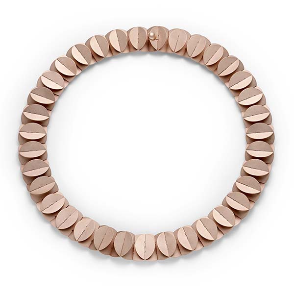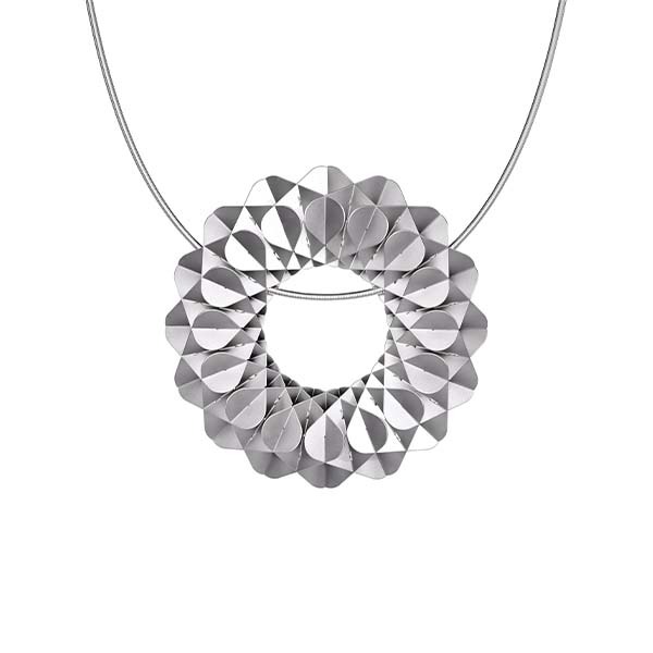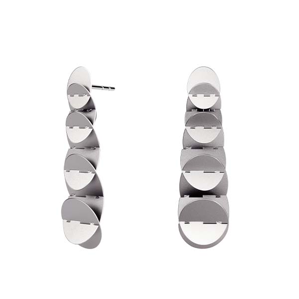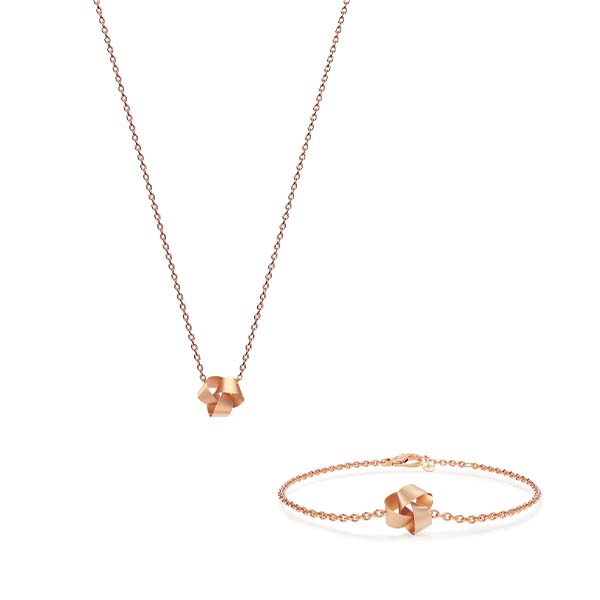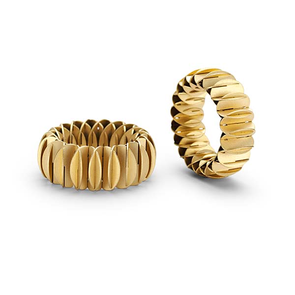 Phoenix steht für Erneuerung und die Ästhetik der Wiederholung. Identische Elemente in Kreis, Oval oder Dreieck fügen sich zu flexiblen Strukturen, die Licht und Tiefe erzeugen. Der Ring ist in drei Breiten erhältlich und bleibt durch die gesteckte Konstruktion haptisch lebendig bei sicherer Form. Der Armreif zeigt dieselbe Offenheit und Anschmiegsamkeit, das Collier nutzt gesteckte Rundelemente, die sich beim Anlegen sanft aufrichten. Ein Schiebeverschluss mit spürbarem Klick sichert die Schließung. Der Ohrschmuck kommt als Creole mit ruhiger Kreisgeometrie oder als vertikaler Ohrhänger mit zarter Strahlkraft. Ergänzend setzen die Anhänger in zwei Durchmessern eine grafische Dahlien Anmutung um und übersetzen Wiederholung in ein präzise rhythmisiertes Bild. Alle Stücke sind in Gold 750 oder Platin 950 in Classic Yellow, Classic Red, Fine Rose und Rosewood mit samtmatter Velvet Oberfläche erhältlich. Für die Vitrine liefert Phoenix eine starke Silhouette, die in Set Beratung vom Ohr über den Arm bis zum Hals führt und damit durchschnittliche Bons erhöht.