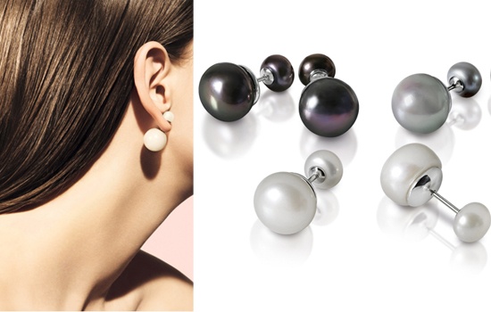 Letzten Frühling haben die Tribal Ohrringe von Dior für Aufsehen in der Schmuckwelt gesorgt. Sie wurden schnell zum Must-Have und ein beliebtes Accessoire bei jungen Damen. Die damaligen Ohrringe der Stunde werden aus Kunstharzperlen gefertigt und nicht aus echten Perlen. Der Wendeohrring-Trend hat sich in diesem Jahr etabliert und viele neue Anbieter der ikonischen Ohrringe sind hinzugekommen. Ernst Stein präsentierte vor Kurzem eine perfekte Alternative. Die Wendeohrringe „Double Face“ sind aus rhodiniertem Silber und es wurden echte Süßwasserperlen verarbeitet. Die Ohrringe sind in Weiß, Grau und Schwarz erhältlich. Sie können auch nur mit der kleinen Perle als einfache Stecker getragen werden.