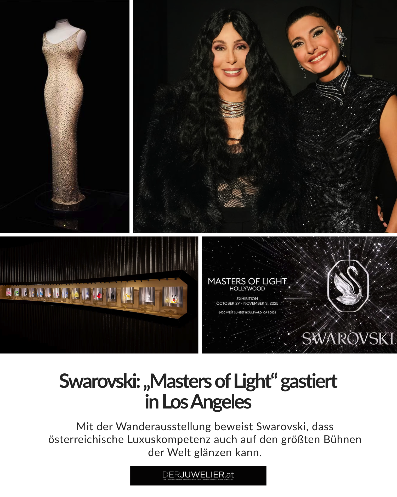 Mit der Ausstellung „Masters of Light – Hollywood“ feiert Swarovski sein 130-jähriges Bestehen und bringt österreichisches Kunsthandwerk auf die Bühne der globalen Unterhaltungsindustrie. Der neueste Teil der Wanderausstellung, kuratiert vom britischen Modejournalisten Alexander Fury und gestaltet unter der kreativen Leitung von Giovanna Engelbert, Global Creative Director bei Swarovski, beleuchtet die jahrzehntelange Beziehung des Unternehmens zu Film und Mode. Swarovski-CEO Alexis Nasard betont die kulturelle Dimension der Veranstaltung: „Los Angeles ist das Zentrum der Musik- und Filmindustrie – der ideale Ort, um unsere enge Verbindung zu Hollywood und unseren Beitrag zu den bedeutendsten Momenten der Filmgeschichte zu würdigen.“ Die Ausstellung ist bis 3. November 2025 in Los Angeles zu sehen und Teil des Jubiläumsprogramms „130 Years of Joy“.