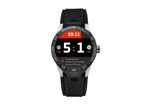 Ein Traum für Fußball-Fans der Bundesliga: Der Nutzer kann sich mit einem Blick auf seine TAG Heuer Connected über die Spielstände seiner Lieblings-Fußballmannschaft informieren.