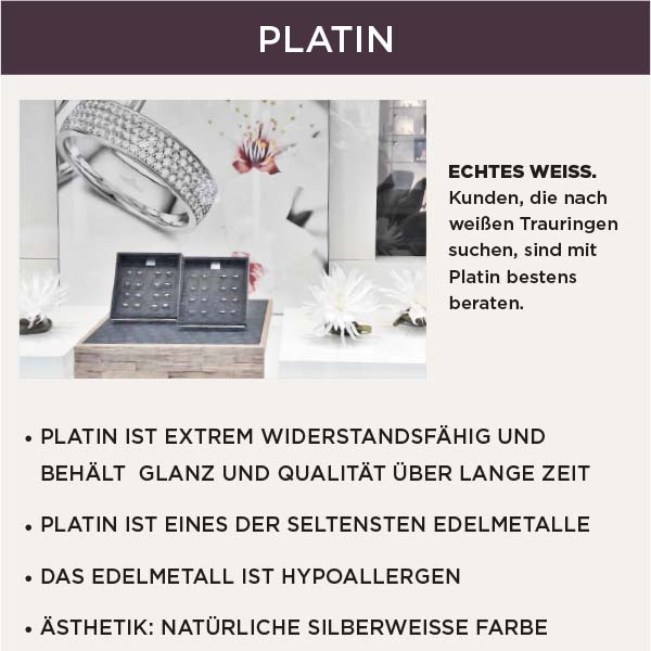 Ein breites Portfolio darf der hohen Gelbgold-Nachfrage jedoch nicht untergeordnet werden. Kundenwünsche zielen auch in Richtung Weißgold und Platin. Da der Preis für Platin mittlerweile wieder deutlich unter jenem des Goldpreises liegt, spezialisieren sich immer mehr Juweliere auf das echte Weiß. Auch Hersteller ziehen dieses Material immer mehr in den Fokus der Produktion. „Wir waren einer der Initiatoren der Platinlancierung und haben eine hohe Kompetenz in der Verarbeitung“, erklärt Sandro Erl von Niessing. Auch bei Meister ist Platin ein wichtiger Bestandteil der Kollektionen. „Kunden, die echtes Weißmaterial suchen, sind nur bei Platin richtig. Ein Solitär in Platin – es gibt nichts besseres“, so Fabian Meister.