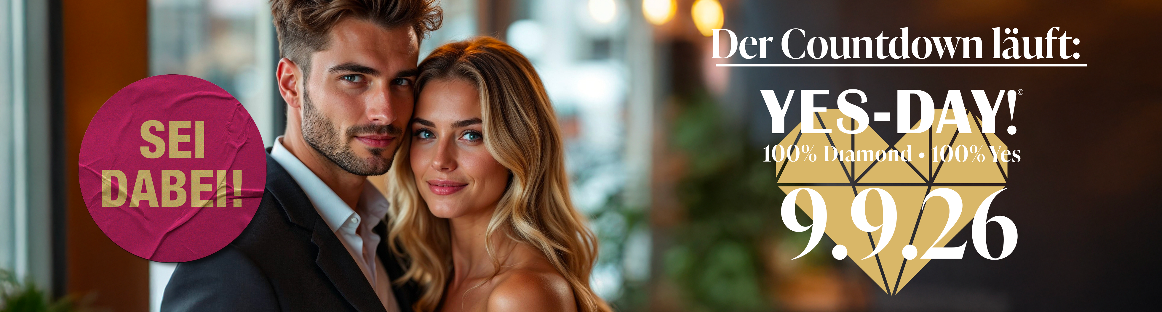 Der YES-MONTH!, also die Wochen im Juli und August, bündelt diese Nachfrage. Er ist die Phase, in der Männer die Kaufentscheidung treffen, damit der Antrag pünktlich zum YES-DAY! gelingt. Der YES-DAY! findet am magischen Datum, dem 09.09.2026, statt. Der Antragstag selbst ist kein Kauftag, sondern das Ziel. Der Umsatz passiert im Vorfeld.